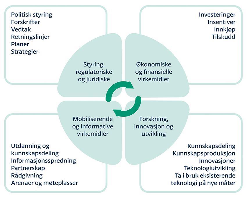 4.2 Fire virkemiddelkategorier for å jobbe med de seks innsatsområdene